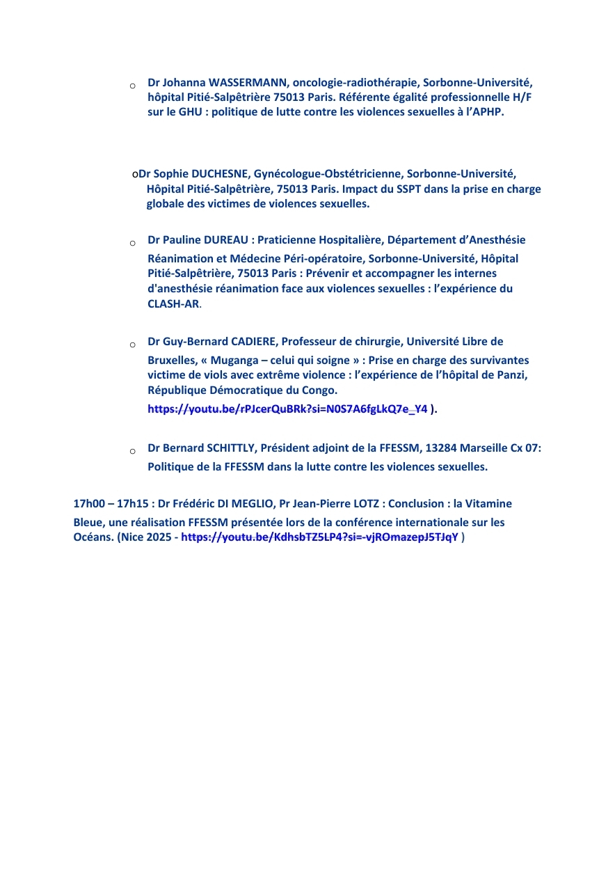 - Transculturalité et Violences Sexuelles : Un volet dense sur la reconstruction des victimes, incluant la politique fédérale de lutte contre les violences sexuelles présentée par le Dr Bernard Schittly.