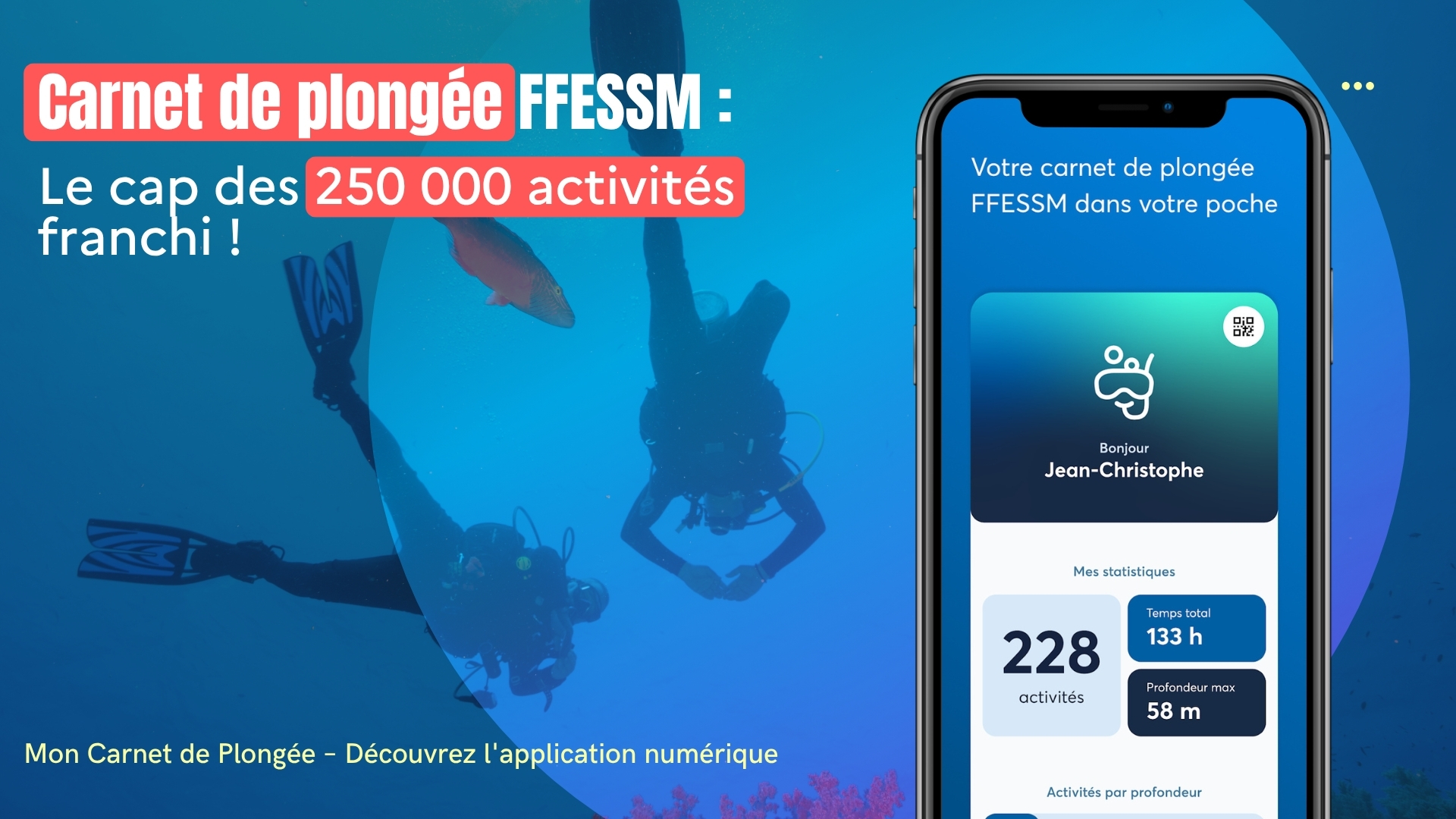 l’application Carnet de plongée FFESSM vient de franchir une étape symbolique : 250 000 activités y sont désormais enregistrées. Plongée bouteille, apnée ou randonnée subaquatique : chaque bulle compte.