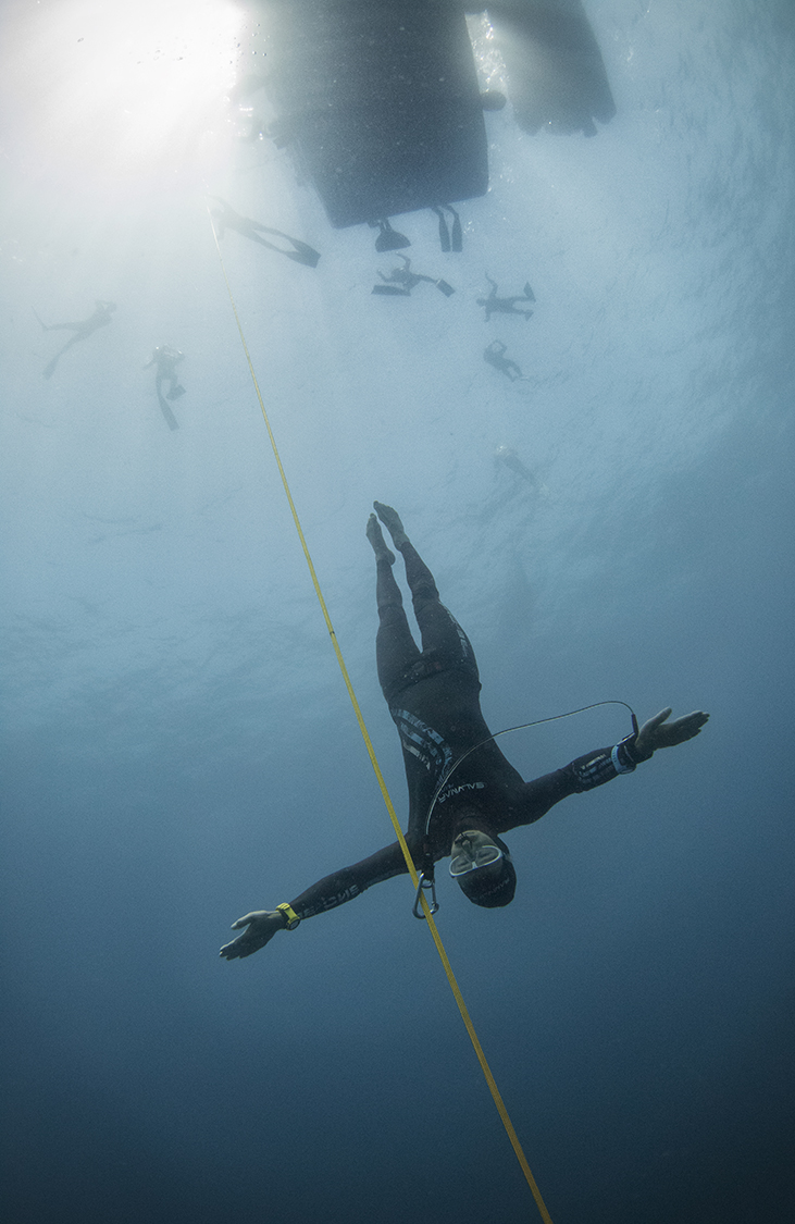 Le nageur équipé d’une monopalme uniquement évolue en apnée dans un sprint spectaculaire : c'est dans cette épreuve que la vitesse maximum est atteinte.