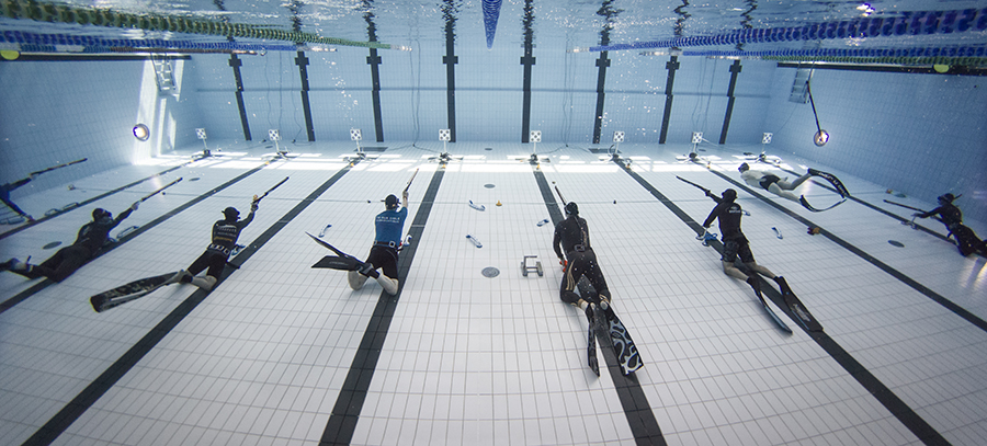 Le tireur doit réaliser un parcours associant apnée et tir avec un objectif de qualification. Le départ est donné à 10 mètres de la cible immergée. Pour valider son temps, le tireur doit avoir mis au moins 3 tirs dans la zone centrale de la cible sur les 5 tirs à réaliser.