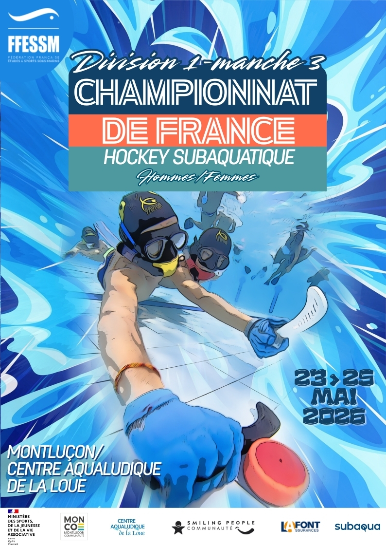 Retrouvez le championnat de France de Hockey subaquatique de division 1 manche 3 homme et femme avec pour arène l'incontournable Montluçon