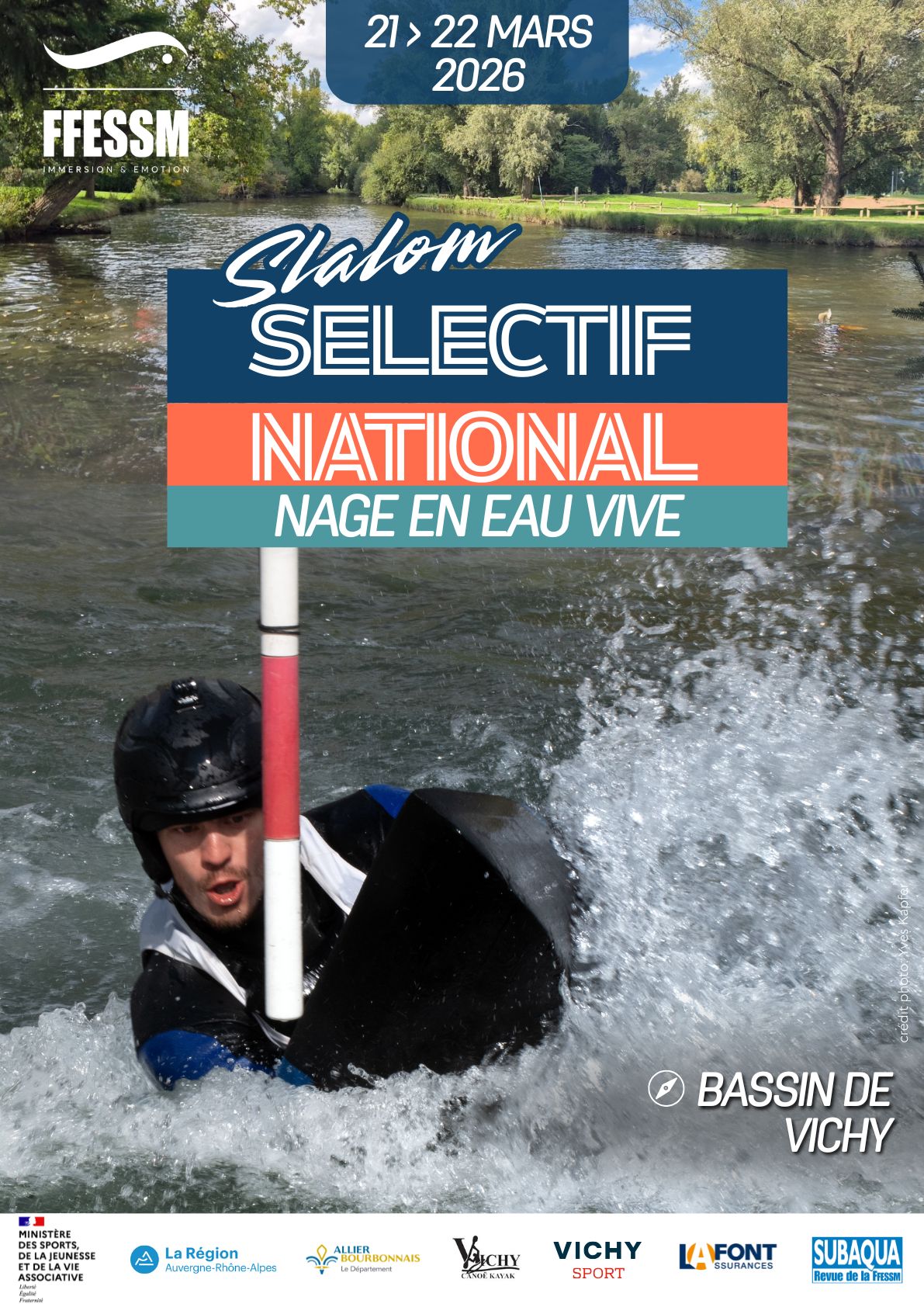 1 er Sélectif national de Slalom Nage en Eau Vive dimanche 22 mars sur le bassin de Vichy