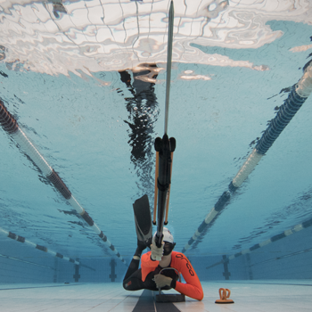 Le plongeur doit parcourir une distance de 25 m en immersion puis gonfler un parachute pour remonter à la surface un objet de 6 kg le plus rapidement possible.