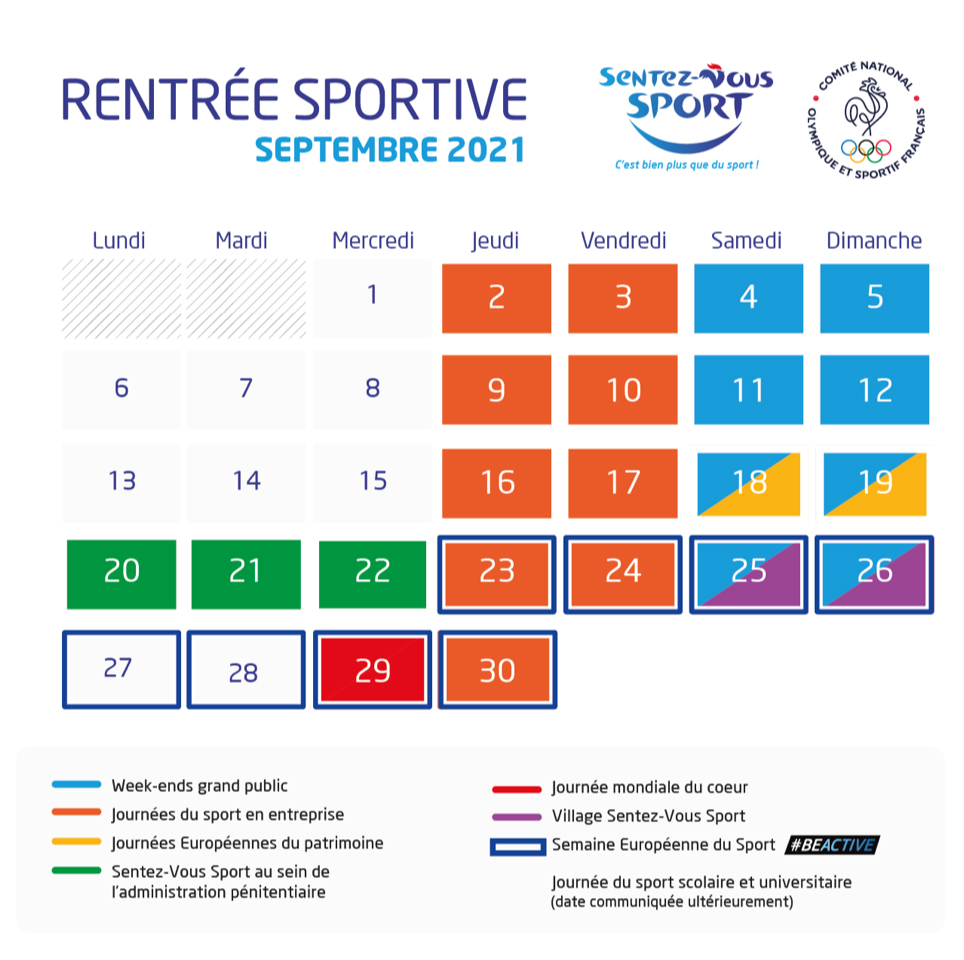 De nombreuses animations et conférences, organisées partout en France en septembre (événements organisés physiquement ou à distance), célèbreront cette rentrée sportive.